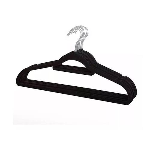 Kit com 10 Cabides Slim Veludo Flocado Preto Gancho de Metal