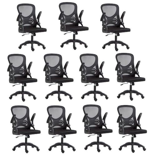 Largura do Conjunto: 60 cm Marca: Rivatti Possui Apoio para Braços: Sim Possui Rodízio: Sim Quantidade do Produto: 10 Recomendações de Uso, Manutenção e Limpeza: Uso interno. Não expor ao sol ou umidade. Não exceder a capacidade de peso. Limpar com pano macio umedecido em solução de água e sabão neutro e secar em seguida. Não utilizar produtos químicos ou abrasivos. Revestimento do Assento: Tela Mesh Revestimento do Encosto: Tela Mesh Sistema de Montagem: kit montagem Suporta Até (kg): 90 kg Tipo de Cadeira de Escritório: Cadeira Diretor Tipo de Mecanismo da Cadeira: Relax