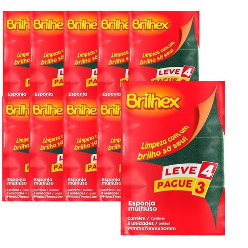 Kit Com 10 Esponja Brilhex Leve 4 Pague 3 Multiuso Kit Com 10 Esponja Brilhex Leve 4 Pague 3 Multiuso A Esponja Brilhex Multiuso - Leve 4 Pague 3 é uma solução prática e econômica para manter sua casa limpa e organizada. Ideal para diferentes superfícies, a esponja é resistente, versátil e eficaz na remoção de sujeiras e gorduras do dia a dia. Características principais: Multiuso: Pode ser utilizada para lavar louças, utensílios domésticos, superfícies de cozinha, banheiros e muito mais. Leve 4, pague 3: Alta durabilidade: Esponja resistente que suporta várias utilizações sem perder a eficiência. Camada abrasiva eficiente: Remove sujeiras difíceis e gorduras incrustadas com facilidade. Fácil de manusear: Tamanho ideal para uso diário, proporcionando conforto durante a limpeza. Benefícios: Economia: Versatilidade: Adequada para diversas superfícies, ajudando em diferentes tarefas de limpeza. Eficiência na limpeza: Remove sujeiras e manchas difíceis com rapidez e praticidade. Durabilidade: Produto feito para durar, evitando a necessidade de constante. Indicações de uso: Louças e panelas: Remove restos de comida e gorduras sem arranhar. Superfícies: Limpa pias, fogões, azulejos, banheiros e áreas externas. Itens domésticos: Pode ser Utilizado para utensílios de plástico, vidro, inox e mais. A Esponja Brilhex Multiuso - Leve 4 Pague 3 é ideal para quem busca praticidade e economia na hora da limpeza, oferecendo um produto de alta qualidade que se adapta às suas necessidades diárias. Marca: Não Informado