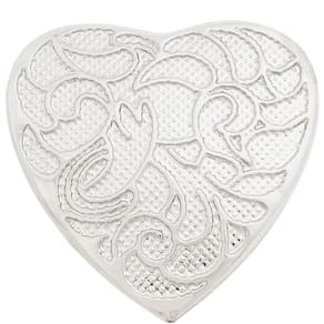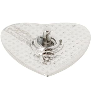 Margarida Coração fabricada em metal com pintura na cor Prata e detalhes entalhados, com tamanho de 29mm fixação por rebite.