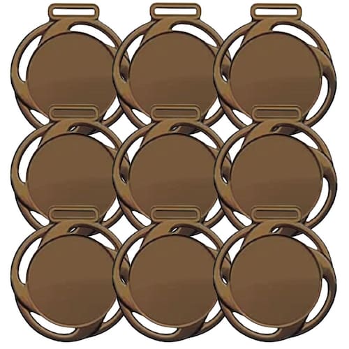 Medalha Rema Linha Ref. 270 40mm - Medalha redonda fundida em liga metálica de Zamac, com desenho interno polido e com frisos raiados, metalizada na cor dourada, prateada e bronze com o tamanho de 40mm que permite a colocação de adesivo de 20mm.