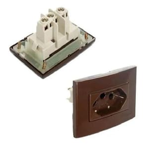 Tomada para embutir em madeira, MDF, MDP ou derivados. Utilizada principalmente na marcenaria, ideais para peças planejadas como armários, cabeceiras, painéis, bancadas, balcões de cozinha, mesas para escritório, entre outrasObs: Modelo de 20A com sistema inteligente para reconhecimento de pino menor 10A por exemplo . Pino não fica solto dentro da tomada, mecanismo de aperto do pino é acionado no interior da tomada para que o mesmo fique firme.Características:amperagem: 20aCorrente: 250VCor: Marrom BrilhanteComposição: Materiais plásticos isolantes termoplásticos de engenharia e ligas metálicas condutorasComprimento: 41.9mm / Largura: 65mm / Altura 45mmPeso: 0,030 kg Ean: 1000000170825