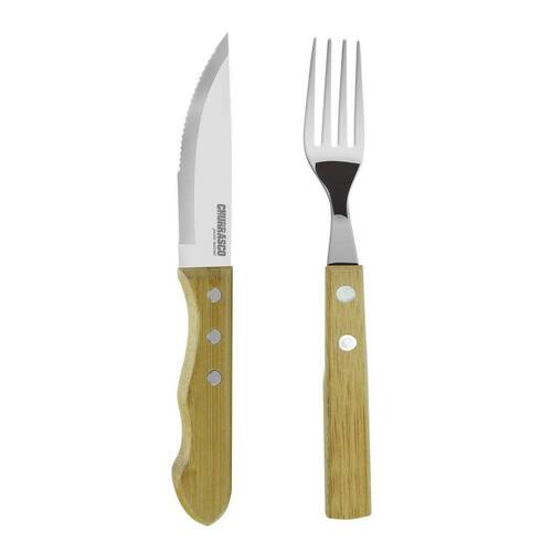 A linha Churrasco Paixão Nacional é produzida em aço inox com cabo em bambu, ou seja, além de ser um agente natural antibacteriano, a fibra do bambu permite ser moldada, resultando em peças com design muito mais moderno para acompanhar o seu churrasco.Especifícações:Composição do kit:12 PEÇAS:GX9063 - Garfo Steak - 6 unidades;GX9504 - Faca Steak 4,5 - 6 unidades.Material: Aço inox + bambuMedidas do Produto - Dimensões aproximadas: Peso Kg 0,912 CxLxA : 35 x 2,5 x 1,2 cmMarca: Gourmet MixFabricante: Marcamix - Utilidades GourmetRecomendações:Uso seguro/adequado: Durante a lavagem, use apenas sabão ou detergente e uma esponja macia. Enxágue bem e enxugue imediatamente, caso contrário poderão surgir manchas no inox. Não utilizar palha de aço, pois pode danificar o produto.