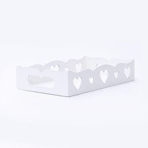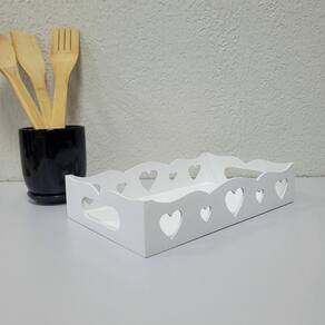 Kit Com 12un De Bandeja De Coração Para Café Da Manhã 100% Mdf (24x15x05) Branco Kit com 12un de Bandeja de Coração para Café da Manhã 100% MDF (24X15x05) Branco - Bandeja de Coração Para quem precisa organizar, e não abre mão da delicadeza, estas Bandejas vão ajudar na organização da sua casa, seja no quarto para guardar maquiagens, cremes, perfume e outros produtos, seja no banheiro organizando os produtos de higiene, na sala com taças, copos, bebidas e várias outras coisas sempre deixando a decoração do ambiente melhor.