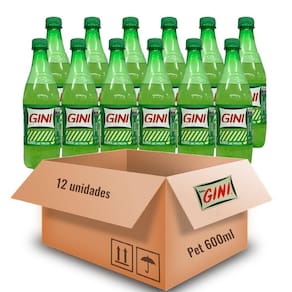 12 unidades de Refrigerante GINI Tradicional Limão em garrafa PET de 600ml.