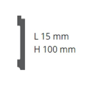 "Material em poliestireno de alta densidade. Instalação rápida e sem sujeira. Produto pronto para pintura. Resistente à umidade. Imune à cupins. Não mofa ou apodrece. Usa somente cola, não sendo necessário parafusos, buchas ou outro tipo de fixação mecânica." Acabamento: Liso Altura do Conjunto: 0 cm Ambiente: null Ambiente Principal: Sala de Jantar Cor: Branco Cor Predominante: Branco Informação Complementar: 15x Rodapé Lambri de Poliestireno 10cm x 15mm x 2.44m Liso MD10 NMC Branco Altura: 10 cm Peso: 1,1 kg/m