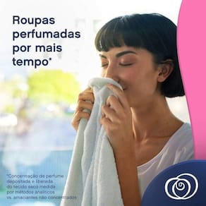 Modo de Usar: Para lavadoras de 9 a 14 kg ou lavagem à mão, utilize 1/3 de tampa (22,5 ml). Para mais perfume ou lavadoras maiores (+15 kg), utilize 1 tampa. ^ Downy concentrado vs. amaciantes não concentrados baseado nas instruções de uso do fabricante Baseado em provas realizadas com conjunto de odores representativos. Baseado em dados Nielsen Brasil, para o ano de 2021 * Concentração de perfume depositada e liberada do tecido seco medida por métodos analíticos vs. amaciantes não concentrados
