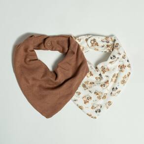 O kit de babadores bandana Hug é perfeito para o bebê utilizar quando seus dentinhos estão nascendo, pois há salivação em excesso, e o babador cuidará da roupinha do bebê, mantendo-a sequinha, pois a parte interna do babador possui uma camada de plástico. Também é indispensável na hora da comidinha, pois mantém a roupa do bebê limpinha e protegida dos alimentos. DIFERENCIAIS: Suedine com nanotecnologia que agrega maciez e tratamento antibacteriano e antifúngico; Tecido macio e confortável Camada de plástico na parte interna, o que deixa a roupa do bebê sequinha, caso caia algum líquido sobre ela; Fechamento em botão de pressão. MEDIDA: 20cm largura x 27cm de altura CARACTERÍSTICAS: Suedine 100% algodão; Meia malha 100% algodão Forro em plástico lisolene Cor: Marrom / Estampado fundo bege