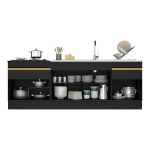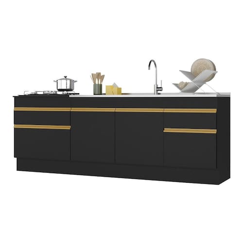 Conteúdo da Embalagem: 1 (um) balcão com tampo 70cm 1 (um) balcão com tampo 150cm 1 (um) kit com rodapés