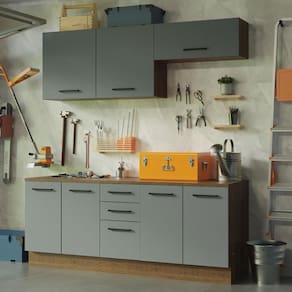 Este conjunto multiuso, composto por dois balcões e dois armários aéreos, é a solução definitiva para transformar a sua garagem em um espaço organizado e funcional.