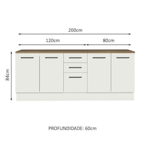 - Um (1) Balcão de 120 cm de largura com duas (2) portas, três (3) gavetas e tampo