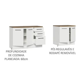 Para completar, os pés são reguláveis em PVC e o rodapé em MDP é removível para facilitar a limpeza.
