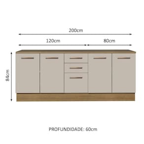 - Um (1) Balcão de 120 cm de largura com duas (2) portas, três (3) gavetas e tampo