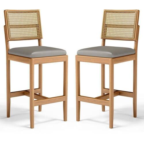 Kit Com 2 Banqueta Milena Madeira Maciça Assento Estofado Encosto De Tela Palha Sextavada Veludo Chumbo 109 - Cinza