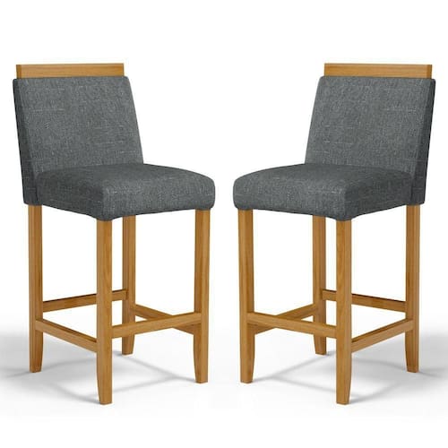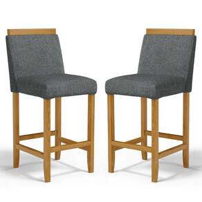 Kit Com 2 Banqueta Eloá Madeira Maciça Assento Estofado Para Bancada Linho Chumbo 406 - Banqueta Banquinho Em Madeira Maciça Encosto Para Bancada