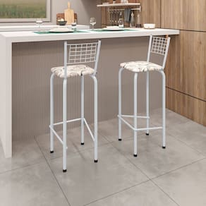 Este lindo Kit com 2 Banquetas Tubular Iza irá embelezar ainda mais a sua cozinha, área de lazer e ainda completar o seu ambiente deixando-o mais receptivo , bonito e sempre disponível para receber a visita de amigos, familiares e convidados. Você vai se apaixonar pela resistência e durabilidade! Proporcionando a você um maior conforto ao se sentar. O Conjunto ideal para quem procura qualidade e praticidade. Aproveite!! Acabamento da Estrutura: Pintura Altura do assento até o chão: 63 cm Altura Regulável: Não Ambiente Principal: Cozinha Complexidade da Montagem: Baixa: pode ser montado por uma pessoa sozinha Cor: Arabesco/ Branco Cor do Produto: Arabesco/ Branco Dobrável: Não Escala de Brilho: Brilhante Itens Inclusos: Kit 2 Banquetas + Manual de Montagens + Kit ferragens Manual de Montagem e Instalação: https://product-hub-prd.madeiramadeira.com.br/977058/documents/56718d95-6772-4833-9af8-cd4253248463266967235281738780235445.pdf Marca: Soma Móveis Material do Assento: MDP Necessita Montagem: Sim Origem do Produto: Nacional Peso: 2,96 kg Possui Encosto: Sim Possui Rodízio: Não Recomendações de Uso, Manutenção e Limpeza: Limpar com pano levemente umedecido, não utilizar solventes nem produtos de limpeza. Sistema de Montagem: Parafusos Tipo de Assento: Fixo Tipo de Encosto: Fixo