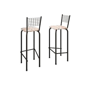 Kit com 2 Banquetas Tubular Iza 96x36x41 Cm Bege/Preto