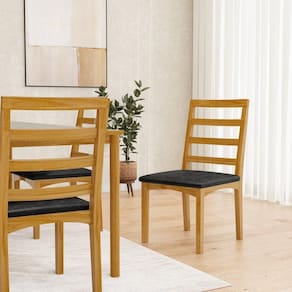 Apresentamos a você a cadeira Cecília, estruturada em madeira maciça com assento estofado com espuma D-23.