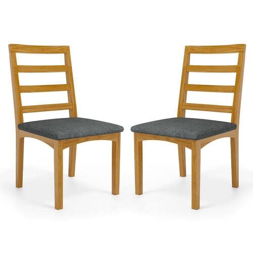 Kit Com 2 Cadeira Cecília Encosto E Pés De Madeira Maciça Assento Estofada Para Mesa De Jantar Linho Chumbo 406 - Cadeira Em Madeira Maciça Assento Estofado