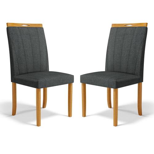 Kit Com 2 Cadeiras Aurora Madeira Maciça Estofadas Para Mesa De Jantar Veludo Chumbo 109