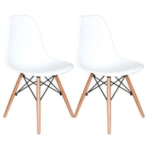 Kit Com 2 Cadeiras Charles Eames Eiffel Branco Cadeira Eiffel Eames Base Madeira A CADEIRA CHARLES EAMES EIFFEL foi criada nos anos 50, é vencedora do Museu de Nova York da concorrência Design de Mobiliário Low-Cost Arte Moderna Internacional. Sua base é em MADEIRA no formato de uma torre faz com que o ambiente não fique sobrecarregado. Adequa-se perfeitamente para compor conjunto de mesa de jantar ou qualquer outro ambiente em sua casa ou escritório. Ideal para receber amigos e familiares com um toque de elegância e charme. As pernas da cadeira são em madeira e fios de aço preto no qual garantem estabilidade à cadeira.
