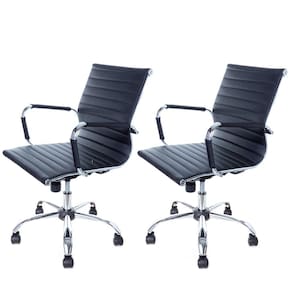 Descrição do produto:Escolher o modelo correto da Cadeira de Escritório pode contribuir muito para uma rotina produtiva e ajudar a manter a postura.A Cadeira Giratória Charles Eames Esteirinha (kit com 2 unidades) possui um misto de design e conforto, compondo um escritório super charmoso e confortável. O assento e o encosto em couro P.U. e os braços fixos (não possuem regulagem de altura) também são revestidos em PU garantindo maior durabilidade.Possui regulagem de altura por pistão, função relax com inclinação de até 25 graus.Suporta até 120kg.Importante: A cor do produto recebido pode variar conforme o monitor visualizado. Não nos responsabilizamos pela montagem.Garantia: 90 dias após o recebimento.Dimensões aproximadas unitário:- Altura Mínima 86 cm;- Altura máxima 96 cm;- Altura do encosto 47cm;- Altura do assento ao braço: Fixo 21 cm;- Altura do assento ao chão Mínimo: 49 cm;- Altura do assento ao chão Máximo: 59 cm;- Altura do braço ao chão Mínimo: 69 cm;- Altura do braço ao chão Máximo: 79 cm;- Profundidade do Assento 47cm;- Largura do Assento: 47 cm.