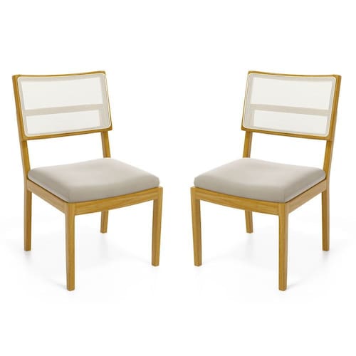 MadeiraKit Com 2 Cadeiras Milena Madeira Maciça Assentos Estofados Encostos De Tela Sintética Courino Preto 503 - Conjunto Kit Com 2 Cadeiras Em Madeira Maciça Encostos De Tela Sintética