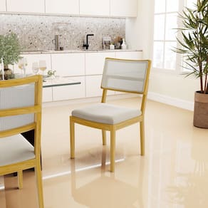 Apresentamos a você as cadeiras Aline, estruturadas em madeira maciça com telinha nos encostos, assentos estofados com espuma D-23.