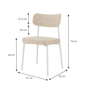 Moderna, confortável e versátil é o que define a Cadeira Mona. É ideal para os amantes dessa tendência que mistura o rústico ao industrial, dando ainda mais personalidade ao seu espaço. Estrutura em aço carbono com pintura epóxi na cor preto, estofadas com revestimento em veludo. Acabamento da Estrutura: Pintura Almofada do assento: Fixa Altura do assento até o chão: 48 cm Ambiente Principal: Sala de Jantar Complexidade da Montagem: Média: pode ser montado por mais de uma pessoa e/ou necessite de maior conhecimento para montagem Cor: Vanilla/Branco Cor do Produto: Vanilla/Branco Cor dos Pés: Branco Dimensões do assento: 6,5 x 46 x 45 Dobrável: Não Enchimento do Assento: Espuma D-28 Enchimento do Encosto: Espuma D-23 Escala de Brilho: Fosco Estrutura do Assento: MDP Estrutura do Encosto: Compensado Giratória: Não Itens Inclusos: 2 Cadeira + Manual de Montagem Linha ou Coleção: Mona Manual de Montagem e Instalação: https://cdn2.madeiramadeira.com.br/prd/metalig/2576766-1733576475-971252-141150.pdf Marca: Yescasa Necessita Montagem: Sim Origem do Produto: Nacional Peso: 11,7 kg Possui Apoio para Braços: Não Possui Assento/Encosto Estofados: Possui Encosto e Assento Estofados Possui Espaldar: Sim Possui Rodízio: Não Quantidade de Itens: 2 Recomendações de Uso, Manutenção e Limpeza: Use um pano maico, levemente umedecido com água. É possível o uso de tergente neutro ou sabão neutro. Sistema de Montagem: Sapata fixa; Parafuso; Chpa de aço; Chave para montagem Suporta Até (kg): 120 kg Tamanho do Produto: 79 x 47 x 52 Tipo de Assento: Fixo Tipo de Encosto: Fixo