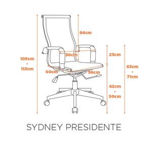 A cadeira Sydney Presidente é toda em tela com aço cromado. A tela garante resistência e conforto para quem estiver usando, além de também possuir seus braços revestidos, para que a pele não entre em contato com o metal direto. Ela possui um assento alongado, o que a torna perfeita para salas de diretoria e mesas de reunião, além de possuir o sistema relax para que seja melhor para seus usuários, travando na vertical, ou balançando de acordo com o movimento do corpo. Produto Montado: Sim Ambiente Principal: Escritório codigo_ean: 7909903427033 Complexidade da Montagem: Baixa: pode ser montado por uma pessoa sozinha Cor: Preto Cor do Produto: Preto Empilhável: Não Enchimento do Assento: Não Possui Encosto Reclinável: Não Itens Inclusos: 2 Cadeiras, Kit Ferragens e Manual de Montagem Manual de Montagem e Instalação: https://product-hub-prd.madeiramadeira.com.br/870600/documents/0d1a3357-8d87-4171-b23e-bfb333c80d4cemsydneypresidenteediretor.pdf Necessita Montagem: Sim Origem do Produto: Importado Peso: 9,47 kg Possui LED: Não Possui Rodízio: Sim Recomendações de Uso, Manutenção e Limpeza: Pano Úmido Sistema de Montagem: Parafuso Suporta Até (kg): 120 kg Ean: 7909903427033