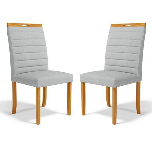 Kit Com 2 Cadeiras Sara Madeira Maciça Estofadas Para Mesa De Jantar Linho Chumbo 406