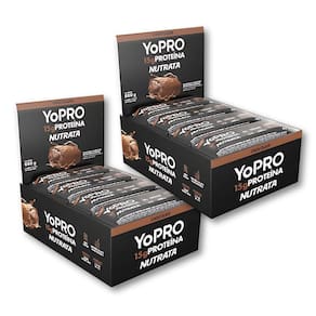 Kit com 2 displays de barra proteica yopro nutrata 12un cada Sabor: chocolate O kit contém 2 caixas de barras de proteína yopro nutrata.