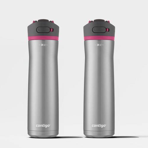 Kit Com 2 Garrafas Térmicas Ashland Chill Autospout Pitaia Contigo | 709ml Hidratação prática e rápida com apenas um clique! O Kit com 2 Garrafas Térmicas Ashland Chill AUTOSPOUT Pitaia de aço inoxidável são perfeitas para acompanhar sua rotina, seja na academia, no escritório ou em viagens. Com a tecnologia Thermalock, seu corpo de aço inoxidável de parede dupla e isolamento térmico mantém a bebida gelada por até 24 horas. A tampa conta com a inovadora tecnologia AUTOSPOUT , que permite beber com apenas um clique: basta pressionar o botão para abrir e para fechar automaticamente soltar. Além disso, a tampa do bico protege contra sujeira e germes, garantindo mais e higiene. Seu design ergonômico inclui uma alçada integrada para facilitar o e é com a maioria dos porta copos. Tanto a tampa quanto o corpo são livres de BPA e seguros para lava louças (prateleira superior), tornando a limpeza mais prática. Principais característicasTecnologia AUTOSPOUT: botão de abertura rápida para beber facilmente com uma mãoThermalock: parede dupla de inox com isolamento a vácuo para manter bebidas geladas por até 24 horasBico com tampa protetora: evita com sujeira e germesDesign à prova de vazamento: extra para levar na bolsa ou mochilaAlça integrada: facilita o para qualquer lugarLivre de BPA: mais para sua saúdeFácil de limpar: tampa e corpo com lava louças (prateleira superior)Capacidade: 709ml Conserva por mais tempoBebidas frias por até 24 horas Garantia12 meses Capacidade709 ml Conteúdo da embalagem02 Garrafas Térmicas Ashland Chill AUTOSPOUT Pitaia01 Manual Material - Inox Garantia - 12 Meses Capacidade - 709 ml Cor Predominante - Rosa Isolamento Térmico - Parede dupla (inox) com isolamento a vácuo Estampas - Não Modelo - Contigo Linha - Ashland Chill Autospout BPA Free - Sim Nome Simplificado - Kit Garrafa Ashland Chill Pitaia Conservação Térmica Frio - 24h Ean: 7891691396915