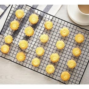 Kit com 2 Grades para Resfriar Bolos E Biscoito Antiaderente Descrição:2 Grade para Resfriar Bolos E BiscoitoColoque o sua massa quente sobre este bonito suporte para esfriar, para que ambas as partes da sua massa tornem-se leve e crocante.Material AntiaderenteMedidas 40 x 25 cmComposição: AlumínioValidade indeterminada. Marca: Scrap
