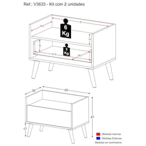 Conteúdo da Embalagem: 2 (duas) mesas de cabeceira 2 (dois) kits com 4 pés retrô