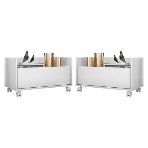 Conteúdo da Embalagem: 2 (duas) mesas de cabeceira com rodízios