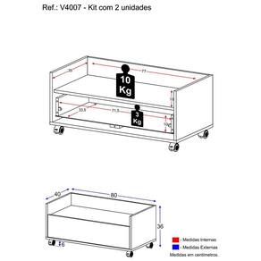 Dimensões do produto montado: Altura: 36cm | Largura: 80cm | Profundidade: 40cm *Você pode consultar as medidas internas na imagem técnica do produto.
