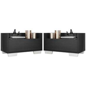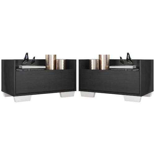 Kit Com 2 Mesas De Cabeceira 80cm Multimóveis V4003 Preta/branca Preto/branco O Kit com 2 Mesas de Cabeceira 80 cm com Pés Quadrados Multimóveis é uma solução prática para deixar o seu quarto mais bonito e complementar seu ambiente. Produzido em MDP com acabamento acetinado (cerca de 20% de brilho), que garante maior durabilidade e resistência, possui 1 gaveta com amplo espaço interno e corrediças metálicas que proporcionam mais leveza no manuseio. Os pés quadrados, em polipropileno, facilitam na hora da limpeza. Seu design clean permite que seja utilizado em diferentes ambientes, adaptando-se conforme sua necessidade. Conteúdo da Embalagem: 2 (duas) mesas de cabeceira 2 (dois) kits com 4 pés quadrados