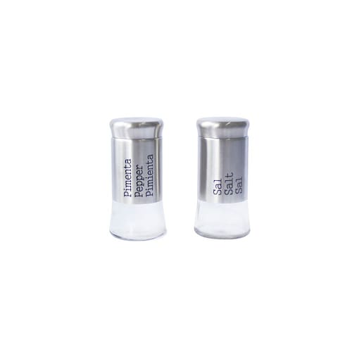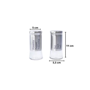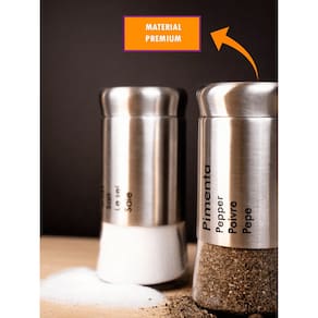 KIT COM 2 PEÇAS DE PORTA TEMPERO SAL E PIMENTA EM INOX - 1684.
