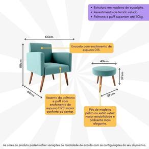 Dimensões do produto montado: Poltrona - Altura: 80cm | Largura: 64cm | Profundidade: 60cm Puff - Altura: 37cm | Largura: 43cm | Profundidade: 43cm *Você pode consultar as medidas internas na imagem técnica do produto.