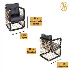 - Altura total: 69cm - Altura até o assento: 43cm - Largura: 71cm - Profundidade: 77cm - Acompanha assento e encosto