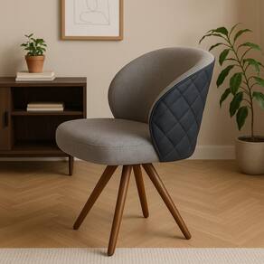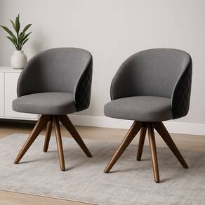 Kit com 2 Poltronas Giratórias Dior Linho grafite e Madeira Castanho – Exclusiva Linho grafite -