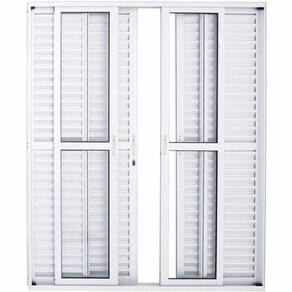 Possui 6 folhas, tem sua abertura no meio, sendo 2 folhas fixas (venezianas, uma na direita outra na esquerda) e 4 folhas que correm (2 venezianas e 2 de vidro). A folhas venezianas que correm ficam do lado de externo do produto e as folhas de vidro do lado interno do produto.