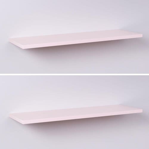 Kit com 2 Prateleiras de Madeira na cor Rosa Bebê 60cm x 20cm x 1,5xm Com Suporte de Embutir (Invisível) . Cada prateleira do Kit é acompanhada de 2 suportes de tipo de Embutir (Invisível) para fixação. Descrições: Cor: Rosa Bebê - Rosa Claro Tamanho: 60cm largura x 20 cm profundidade x 1,5cm espessura Material: Madeira MDP Fixação: de embutir (invisível) Instruções de uso e instalação: Para fácil limpeza, utilize pano levemente umedecido. Não utilizar produtos químicos ou abrasivos. Acompanha embalagem com as instruções de montagem e fixação. Observação: todos os itens de decoração das fotos não acompanham o produto. Ean: 7899983604595