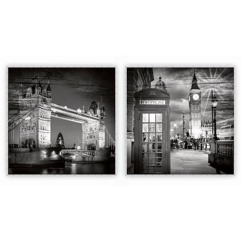 Kit Com 2 Quadros Decorativos Cidades Com Moldura Para Sala Quarto Escritório 42x42 Cidades 003