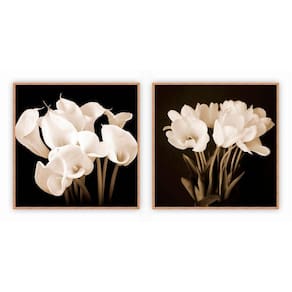 Kit Com 2 Quadros Decorativos Florais Com Moldura E Vidro Para Sala Quarto Escritório E Clínica 52x52 - Art. Cor Floral 012