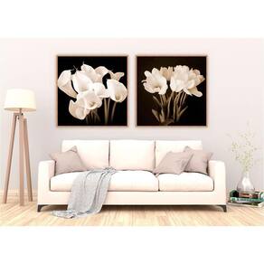 Kit Com 2 Quadros Decorativos Florais Com Moldura Para Sala Quarto Escritório 52x52 Floral 012
