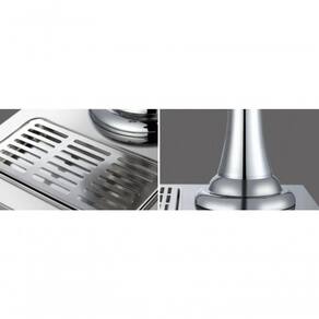 Produto de fácil manuseio, não é eletrico, conta com torneira de acionamento e bandeja coletora de líquidos, evitando respingos e sujeiras no local, base,tampa e refil congelante em aço Inox de alta resistencia
