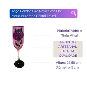 Kit com 2 Taças Pomba Gira Maria Mulambo Cristal Roxo 150 ml Kit com 2 Taças Pomba Gira Roxa Maria Mulambo Cristal 150 ml Estas Taças personalizadas é um excelente produto para presentear e celebrar os nossos Guardiões e Guardiãs. Temos uma coleção completa de taças personalizadas dos Guardiões Material: Vidro Altura: 22,50 cm Diâmetro: 5 cm Capacidade: 150 ml Mililitros
