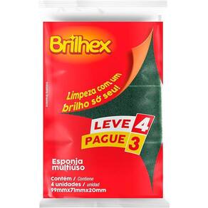 Kit Com 20 Esponja Brilhex Leve 4 Pague 3 Multiuso Kit Com 20 Esponja Brilhex Leve 4 Pague 3 Multiuso A Esponja Brilhex Multiuso - Leve 4 Pague 3 é uma solução prática e econômica para manter sua casa limpa e organizada. Ideal para diferentes superfícies, a esponja é resistente, versátil e eficaz na remoção de sujeiras e gorduras do dia a dia. Características principais: Multiuso: Pode ser utilizada para lavar louças, utensílios domésticos, superfícies de cozinha, banheiros e muito mais. Leve 4, pague 3: Alta durabilidade: Esponja resistente que suporta várias utilizações sem perder a eficiência. Camada abrasiva eficiente: Remove sujeiras difíceis e gorduras incrustadas com facilidade. Fácil de manusear: Tamanho ideal para uso diário, proporcionando conforto durante a limpeza. Benefícios: Economia: Versatilidade: Adequada para diversas superfícies, ajudando em diferentes tarefas de limpeza. Eficiência na limpeza: Remove sujeiras e manchas difíceis com rapidez e praticidade. Durabilidade: Produto feito para durar, evitando a necessidade de constante. Indicações de uso: Louças e panelas: Remove restos de comida e gorduras sem arranhar. Superfícies: Limpa pias, fogões, azulejos, banheiros e áreas externas. Itens domésticos: Pode ser Utilizado para utensílios de plástico, vidro, inox e mais. A Esponja Brilhex Multiuso - Leve 4 Pague 3 é ideal para quem busca praticidade e economia na hora da limpeza, oferecendo um produto de alta qualidade que se adapta às suas necessidades diárias. Marca: Não Informado